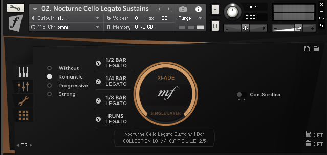 CAPSULE chooses the right out of 14 real recorded legato interval variations depending on your playing speed and performance. With its intuitive playing the Nocturne Cello will shine at every tempo.